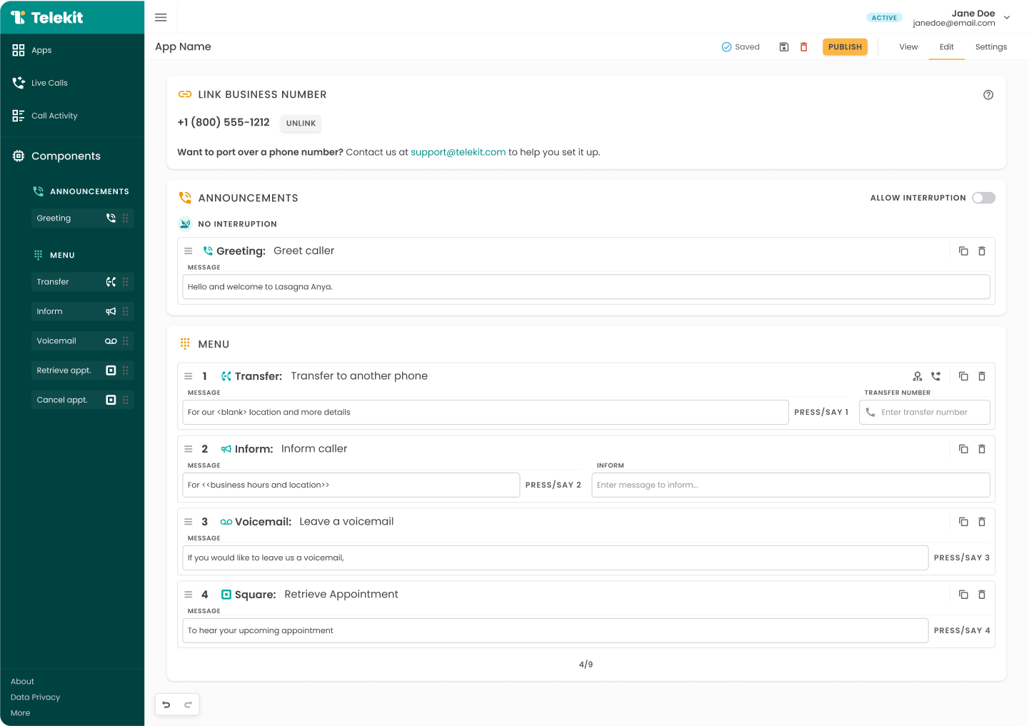 Once the caller makes their choice, Telekit transfers the call for one-on-one live talk or voicemail.